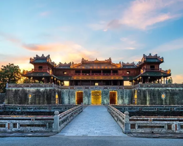 Du krydser Huong-floden via Truong Tien-broen og fortsætter ind i den gamle bydel, hvor du stopper ved Dong Ba-markedet. Her kommer du tæt på det lokale liv med handlende, som køber ind til aftenens middag. Du får tid til at gå på opdagelse blandt de mange boder, der er fyldt med frisk frugt, grøntsager, kød, fisk og skaldyr. Hold øje med de lokales evne til at ”prutte” om prisen – måske kan du lære et par tricks.