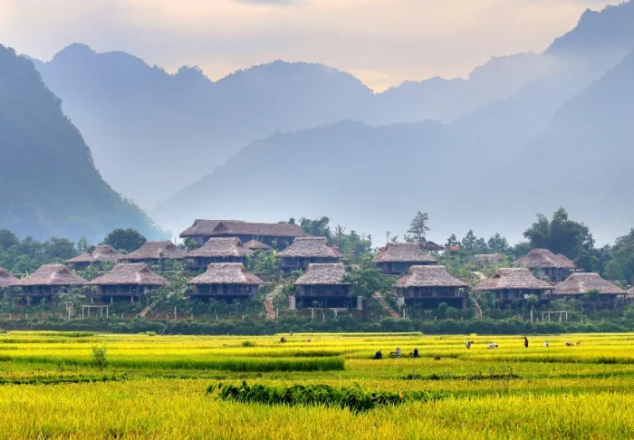 I det smukke landskab syd for Hanoi mellem rismarker og kalkstensbjerge, finder du det stille og fredfyldte Tam Coc Rice Fields Resort.