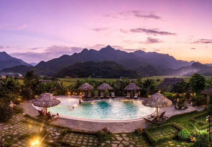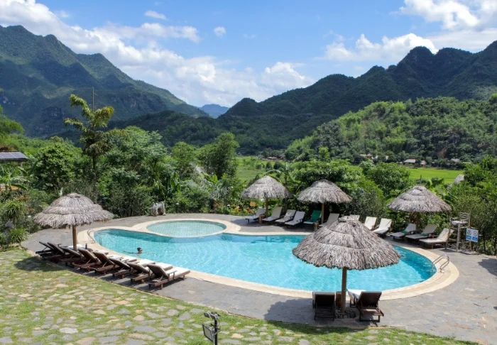 Blandt frodige rismarker, kalkstensklipper og rislende floder ligger Tam Coc Garden Resort. Her kan du trække dig tilbage og nyde Ninh Binhs enestående natur, der kan tage pusten fra enhver.
