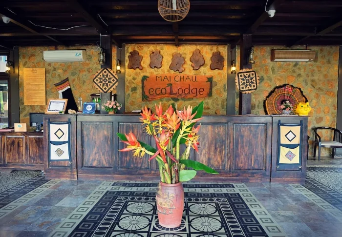 Resortet er økovenligt og bygget i naturlige og bæredygtige materialer og det meste af resortets inventar er fremstillet i fint mørkt træ på resortets eget snedkeri.