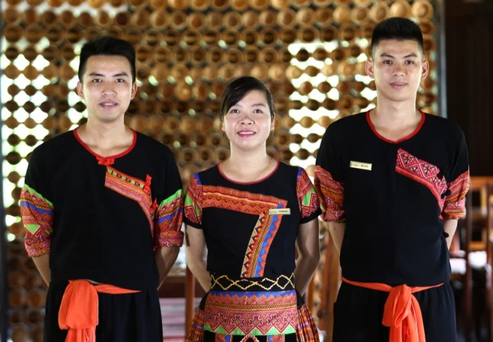 Resortets bygninger er opført i to etager med gule facader, røde tage og detaljer i mørkt træ, inspireret af traditionel byggestil fra det nordlige Vietnam. Emeralda har en mindre udstilling, som giver et indblik i vietnamesisk kultur og historie og bidrager til den særlige stemning på resortet.
