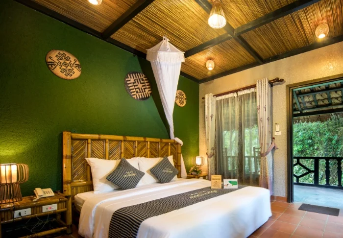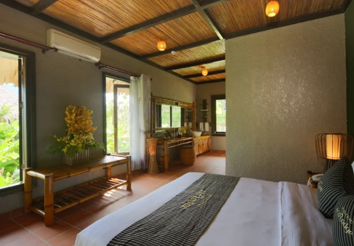 Du bor som udgangspunkt i et superior-værelse på 36 m², som er velegnet til 2 personer. Værelserne har trægulv, møbler i mørkt træ og lyse vægge, som giver et roligt og enkelt udtryk. Der er udsigt mod Ngo Dong-floden og omgivelserne omkring resortet, og værelset har egen balkon eller terrasse. Her er aircondition og mørklægningsgardiner samt tv, wi-fi, telefon, værdiboks, køleskab og elkedel til te og kaffe. Der står gratis mineralvand på flaske til rådighed. Badeværelset er udstyret med både bruser og badekar samt toiletartikler, badekåbe, slippers og hårtørrer.