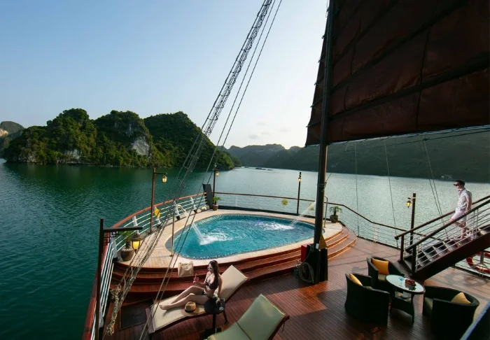 Orchid Trendy Cruise tager dig med på et gennemført minicruise gennem Lan Ha-bugten, hvor ro, faciliteter og udsigt går hånd i hånd. Skibet glider stille gennem bugtens karakteristiske landskab af kalkstensklipper, grønklædte øer og smaragdgrønt vand, og tempoet giver dig tid til at være til stede i oplevelsen.