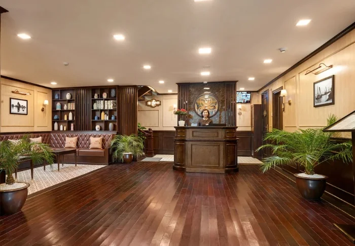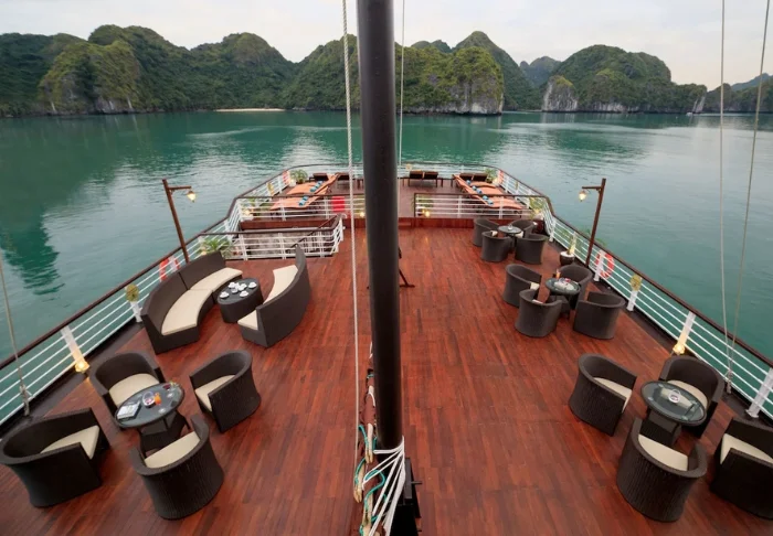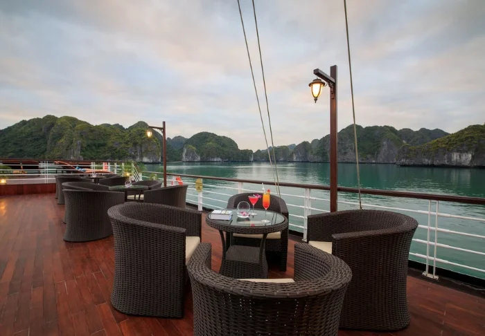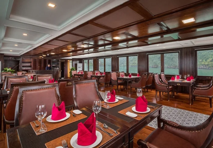 Skibet har naturligvis også en restaurant, hvor der serveres vietnamesiske specialiteter og internationale retter. Måltiderne nydes i rolige omgivelser og bliver hurtigt et naturligt samlingspunkt efter dagens oplevelser.