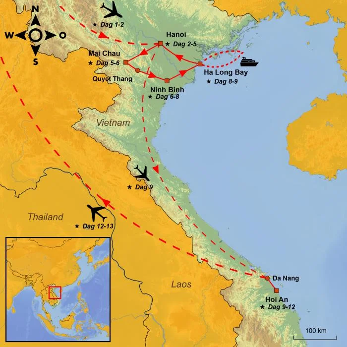 Oplev Hanois storbyliv, cykl gennem frodige dale i Mai Chau, sejl gennem Trang An-grotterne i Ninh Binh og blandt kalkstensklipper i Ha Long-bugten. Rejsen afrundes i hyggelige Hoi An.