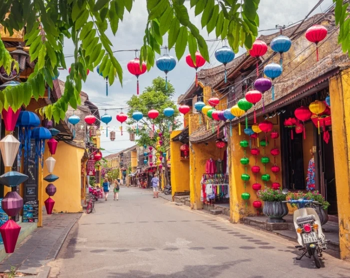 Væk fra floden breder en labyrint af små stemningsfulde gader sig. Her mødes du af et farverigt miks af japanske træhuse, kinesiske forsamlingshuse, franske kolonitidsbygninger og de karakteristiske købmandshuse. Farverige lanterner hænger som guirlander over gaderne og skaber en særlig stemning, især når mørket falder på. Butikker, gadekøkkener, caféer og små restauranter ligger som perler på en snor og indbyder til afslappede stunder og nysgerrige opdagelser.