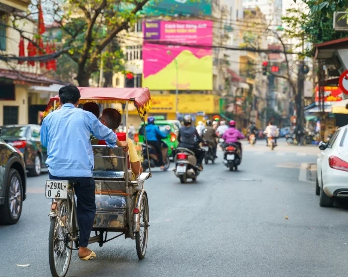 Turen fortsætter i en traditionel cykeltaxa – også kaldet en cyclo – gennem det gamle kvarters labyrint af smalle gader og livligt handelsliv. Det gamle kvarter er kendt for sine 36 gader, som oprindeligt blev opkaldt efter de varer, der blev solgt her: bambus, silke, papir og blik. I dag lever mange af gadens navne videre, og stemningen emmer af lokal charme, hvor hanoianerne stadig handler, småsnakker og serverer dampende pho fra gadekøkkenerne.