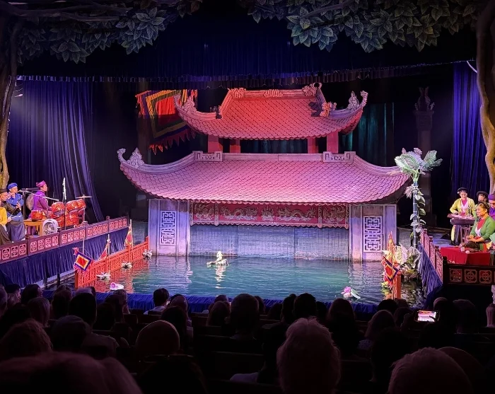 Dagens sightseeingtur rundes af med en forestilling i vanddukketeater, som er en flere hundrede år gammel vietnamesisk tradition, hvor dukker danser på vandets overflade til levende musik og klassisk fortælling.