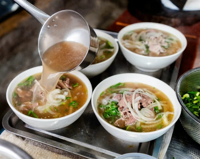 Til frokost kan du gå på jagt efter Hanois berømte streetfood. Prøv en dampende skål pho, nyd duften af grillede bun cha eller tag en sprød banh mi med på farten.