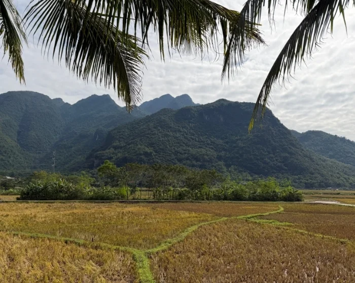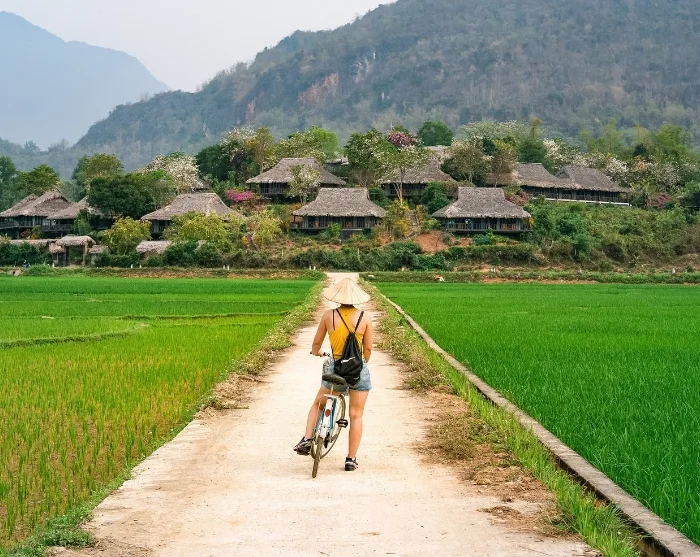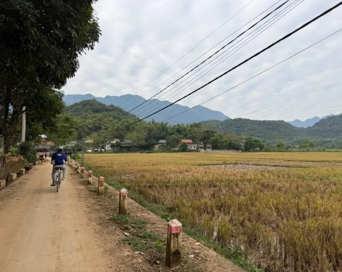 Fra Hanoi går turen til den frodige Mai Chau-dal, hvor du cykler mellem rismarker og autentiske landsbyer omgivet af grønne bjerge.