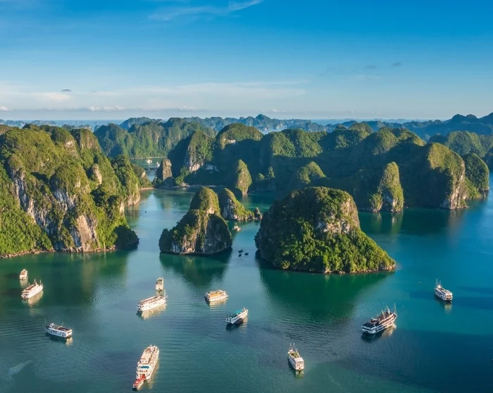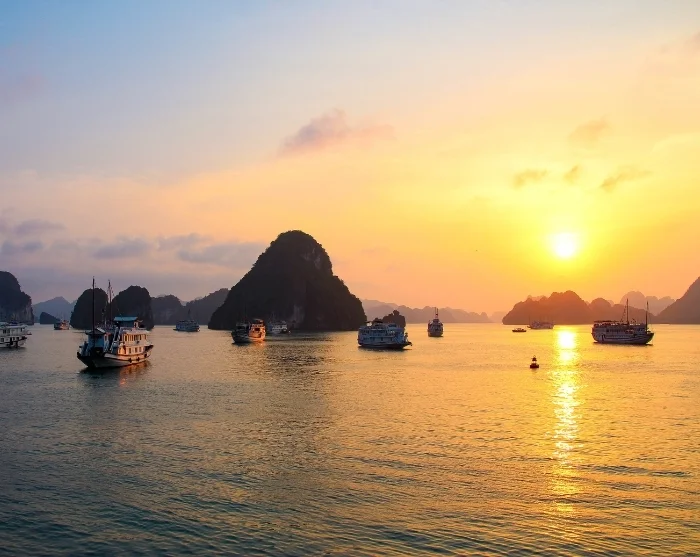 Herefter går turen til Ha Long-bugten, hvor du sejler blandt tusindvis af små kalkstensøer og overnatter på et 4-stjernet minikrydstogtsskib, en fuldkommen uforglemmelig oplevelse i et af Vietnams smukkeste naturområder.