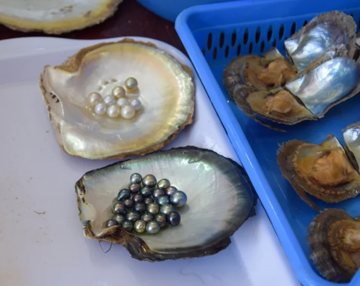 Senere lægger båden til ved en lokal perlefarm, hvor du får indblik i den traditionelle perledyrkning. Her har du også mulighed for at hoppe i en kajak og padle stille gennem det naturskønne landskab.