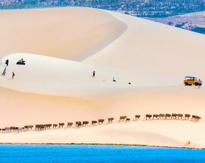 Mui Ne begyndte som en lille fiskerlandsby, men har siden forvandlet sig til en charmerende badeferiedestination. Her kan du nyde brede, gyldne strande med blødt sand og et lunt, indbydende hav. Langs kysten ligger små, lokale restauranter, hvor du kan smage autentiske vietnamesiske retter i afslappede omgivelser.