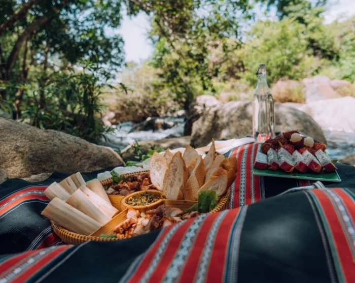 Herefter begiver du dig ud på en spændende vandretur til Bim Bip-vandfaldet, hvor du undervejs kan nyde de smukke naturscenerier. Ved ankomst venter en picnicfrokost med traditionelle retter pakket ind i bananblade – og måske en forfriskende dukkert i vandfaldets naturlige pool.