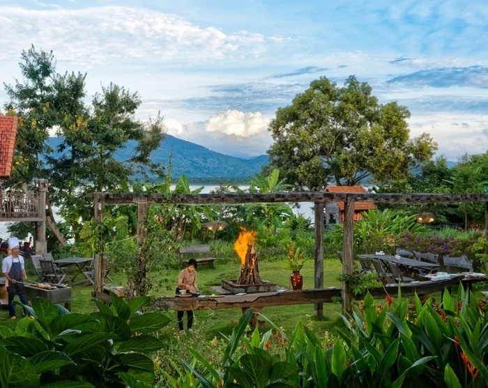 Tilbage på Lak Tented Camp kan du se frem til en stemningsfuld aften med traditionel gongmusik, lokal risvin (Ruou Can) og en lækker BBQ-middag ved bålet, inden du trækker dig tilbage for natten.