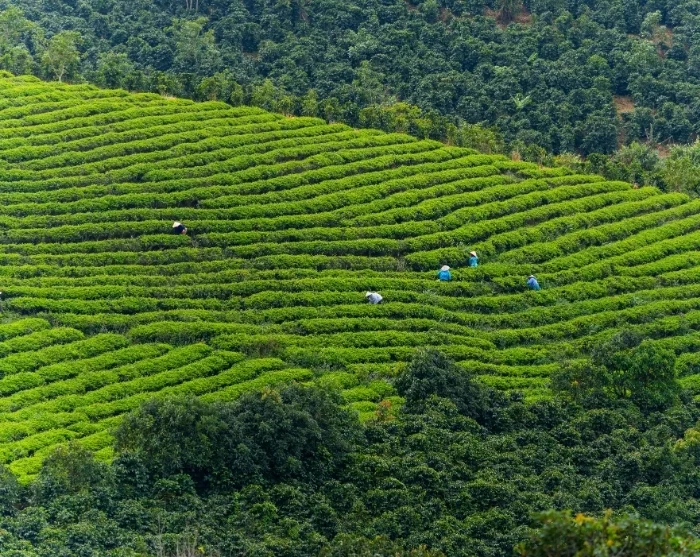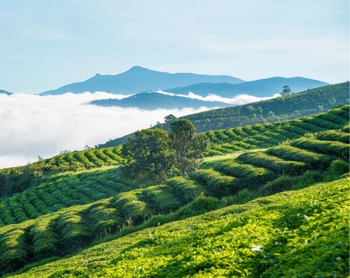 Dagen starter med en togtur til Trai Mat, hvor du undervejs kan nyde panoramaudsigten over Da Lats bølgende bakkelandskab. Efter ankomst til Trai Mat udforsker du det omkringliggende landskab, inden turen fortsætter til Cau Dat-teplantagen, hvor grønne tebuske breder sig så langt øjet rækker. Her lærer du om tefremstillingsprocessen og nyder en friskbrygget kop te, mens du tager det betagende højlandslandskab ind.