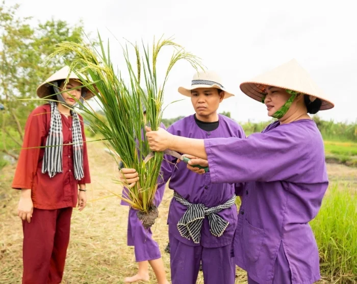 Du fortsætter til vores bæredygtighedsprojekt i Vinh Long, som er startet af vores lokale samarbejdspartner. Her venter en rolig gåtur gennem landsbyen, hvor din guide undervejs giver dig indblik i projektet. Du får også mulighed for at tage del i det traditionelle landbrugsliv. Sammen med lokale bønder prøver du kræfter med risdyrkning, enten ved at plante de spæde risplanter eller ved at hjælpe til med høsten, alt efter sæsonen. Det er en lærerig og jordnær oplevelse, der giver dig et unikt indblik i hverdagen i Vietnams landdistrikter og i det arbejde, der ligger bag et bæredygtigt landbrug. Når du deltager på turen, er du samtidig med til at gøre en forskel for familierne i Vinh Long, da en procentdel af rejsens pris går direkte til projektet, som du kan lære mere om her.