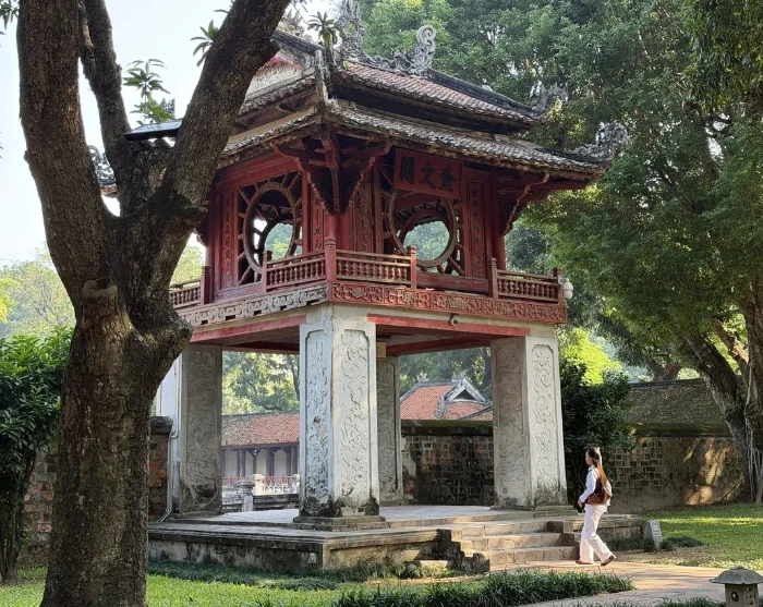 Du bliver herefter kørt til Litteraturens Tempel, som er et fredfyldt kompleks opført i 1100-tallet af elever af den kinesiske filosof Confucius. Med næsten 1.000 år på bagen er templet et sjældent og velbevaret eksempel på traditionel vietnamesisk arkitektur, komplet med søjlegange, damme og grønne gårdhaver, hvor unge studerende stadig kommer for at bede om held til deres eksamener.