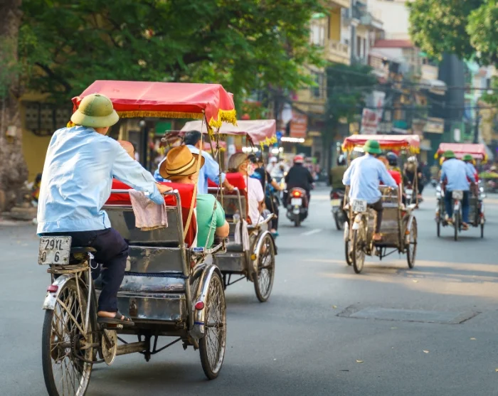 Turen fortsætter i en traditionel cykeltaxa – også kaldet en cyclo – gennem det gamle kvarters labyrint af smalle gader og livligt handelsliv. Det gamle kvarter er kendt for sine 36 gader, som oprindeligt blev opkaldt efter de varer, der blev solgt her: bambus, silke, papir og blik. I dag lever mange af gadens navne videre, og stemningen emmer af lokal charme, hvor hanoianerne stadig handler, småsnakker og serverer dampende pho fra gadekøkkenerne.