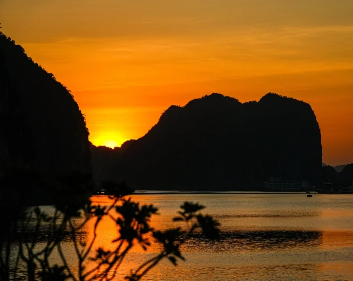 Senere vender du tilbage til dit skibet, hvor der er afslappet stemning på dækket og mulighed for at nyde solnedgangen over bugten. Du kan også deltage i en hyggelig madlavningsdemonstration og lære at lave vietnamesiske forårsruller.