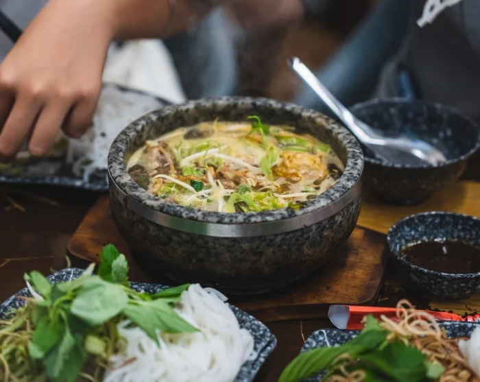 Til frokost kan du gå på jagt efter Hanois berømte streetfood. Prøv en dampende skål pho, nyd duften af grillede bun cha eller tag en sprød banh mi med på farten.