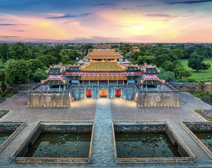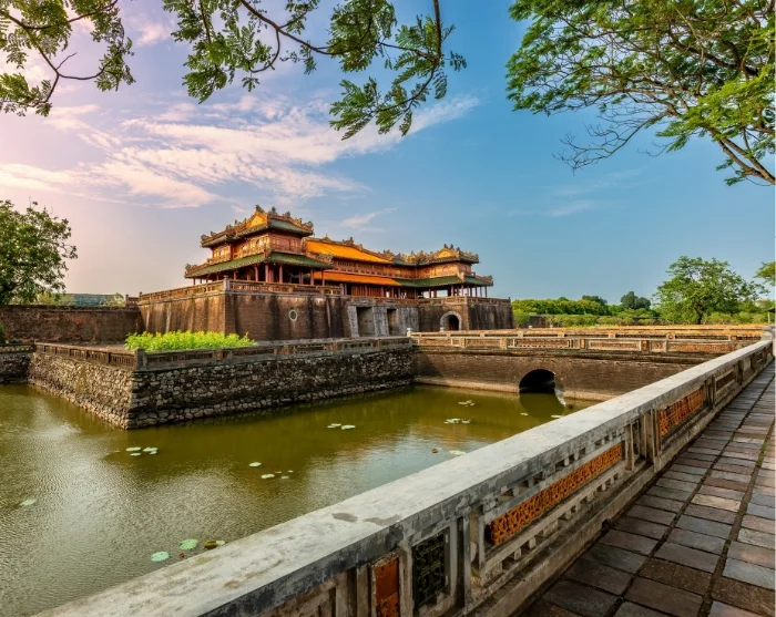 Fra Hanoi flyver du videre til Hué, Vietnams tidligere kejserby. Her venter en byrundtur med citadellet, kejserlige grave og fortællinger om landets dynastier.