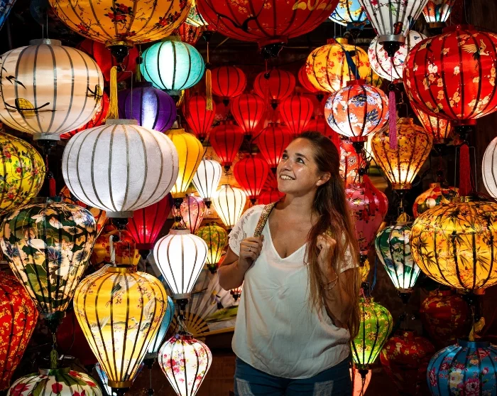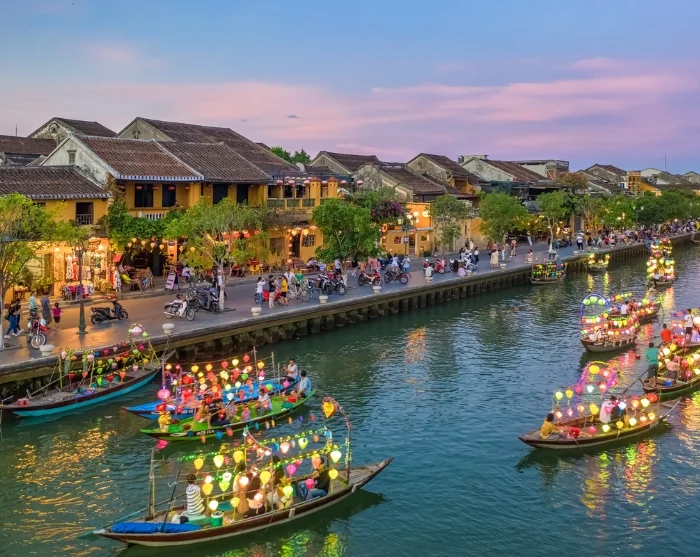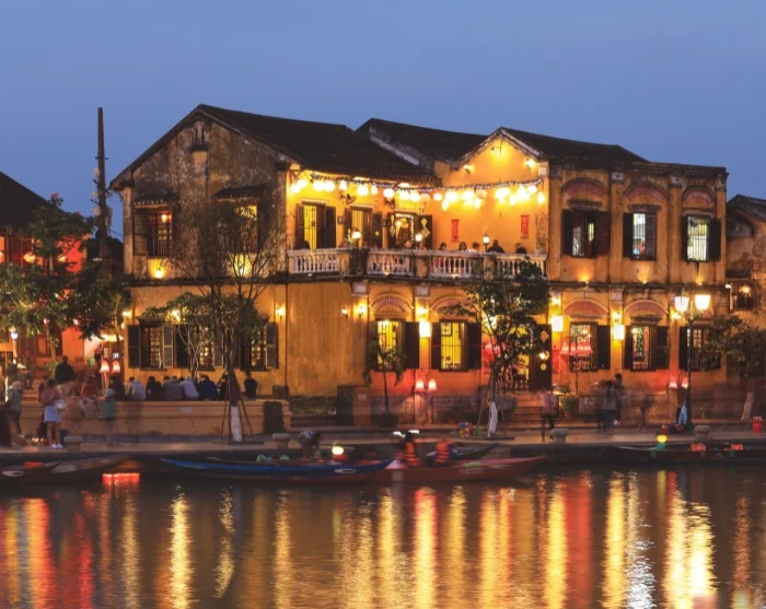Efter check-in kan du nyde din første aften i Hoi An. Når mørket falder på, forvandles den gamle bydel til et levende postkort. Farverige lanterner tændes over gader og stræder og spejler sig i Thu Bon-floden, mens små både stille glider gennem vandet.
