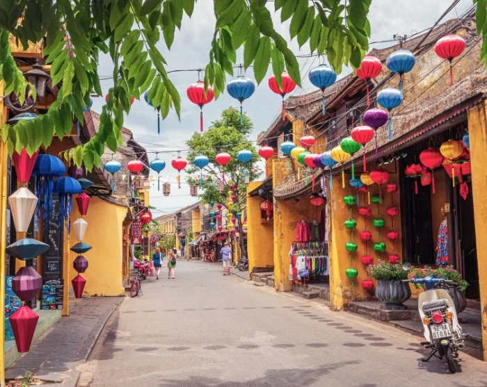 Her mødes du af et farverigt miks af japanske træhuse, kinesiske forsamlingshuse, franske kolonitidsbygninger og karakteristiske købmandshuse. Gå på opdagelse i de stemningsfulde gader, besøg små templer og kig indenfor i de gamle handelshuse, hvor historien stadig sidder i væggene.