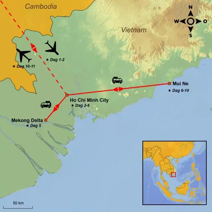 I dag forlader du Ho Chi Minh City og begiver dig mod kystbyen Mui Ne – en køretur på ca. 3 timer. Undervejs vil du opleve et markant skift fra storbyens livlige tempo til roen ved de solrige strande.