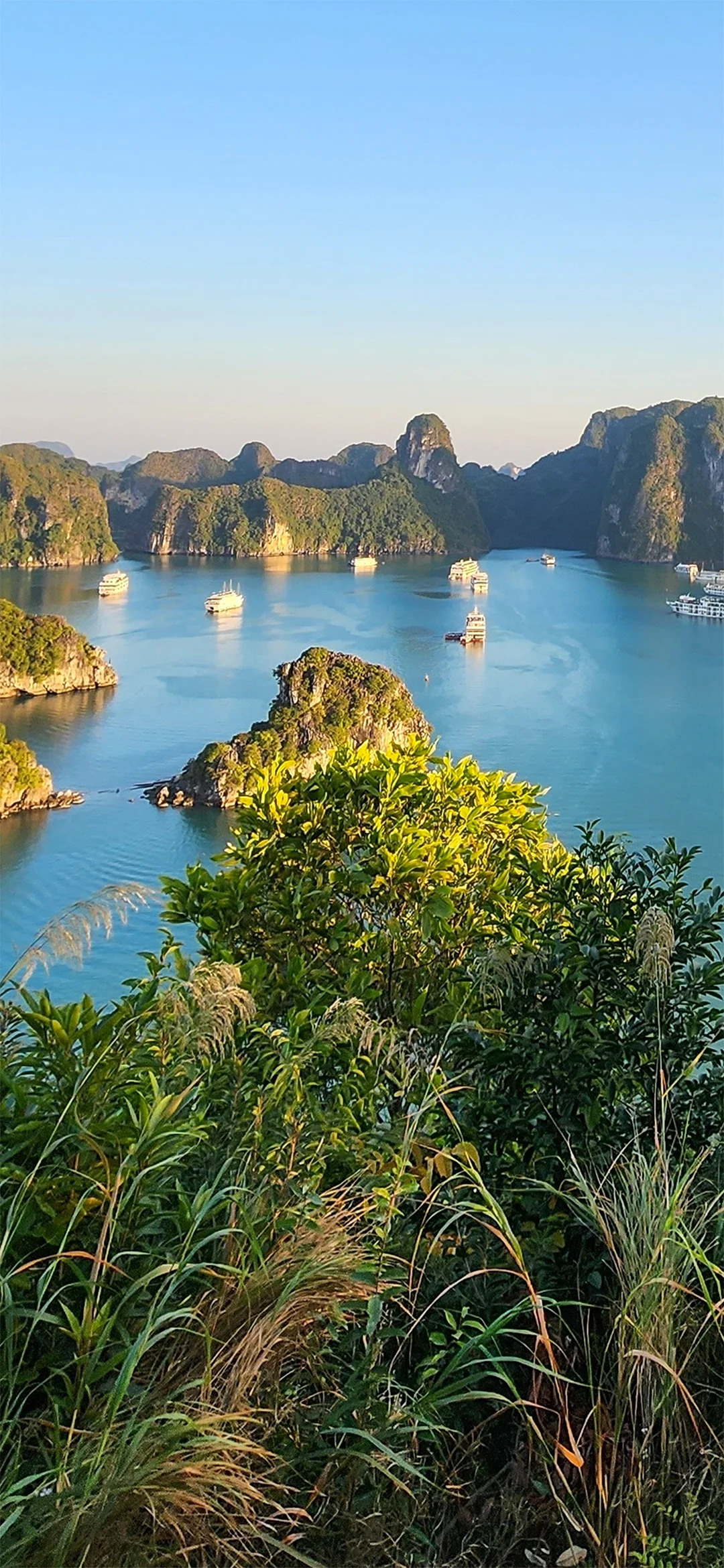 Fra Hanoi går turen mod øst til Ha Long-bugten, hvor du sejler på et minikrydstogt blandt kalkstensklipper. Du besøger Ti Top Island med mulighed for badning og udsigt fra toppen, udforsker en stor drypstensgrotte, overnatter ombord og vågner til morgenlys over det smaragdgrønne vand.