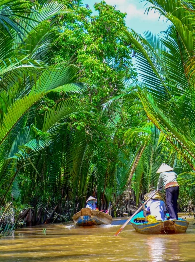 Dernæst flyver du til Ho Chi Minh City, og herfra oplever du det frodige Mekong-delta, sejler mellem palmer og små kanaler og besøger vores bæredygtige og sociale udviklingsprojekt i Vinh Long, hvor du møder lokalbefolkningen og får indblik i hverdagen på landet.