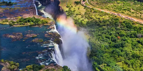 Victoria Falls er ét af verdens største vandfald og det ligger faktisk på grænsen mellem Zambia og Zimbabwe.
