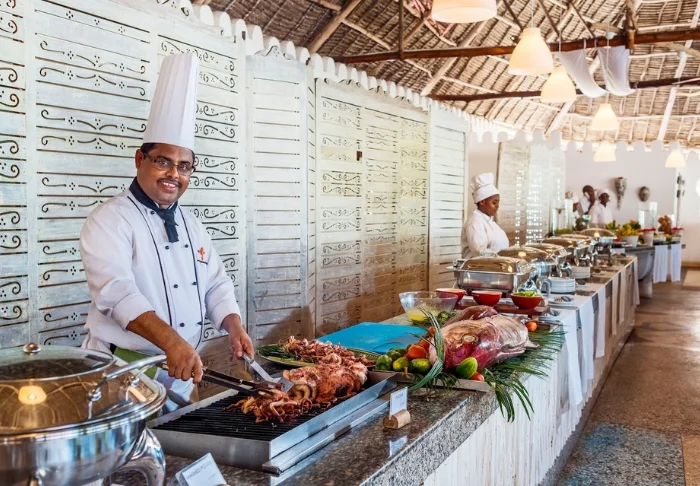 I hotellets restaurant serveres lækre lokale retter med fisk og skaldyr, samt varierede retter fra det afrikanske, indiske og arabiske køkken. Maden er frisk og vellavet. Morgenmaden består af buffet, samt æg og pandekager serveret direkte fra køkkenet, og helt præcist som du gerne vil have det.