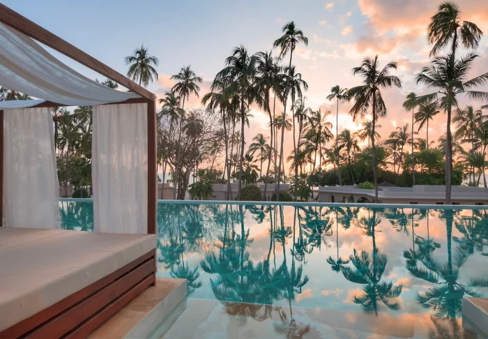 Luksusresortet ligger på øens sydvestlige kyst – kun godt en times kørsel fra den internationale lufthavn – men i en helt anden verden. Omgivet af en stor tropisk have og med udsigt til kokospalmer, som vejer i vinden på den kilometerlange hvide sandstrand, finder du 66 private og eksklusive villaer.