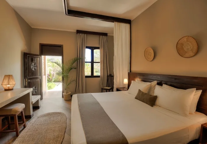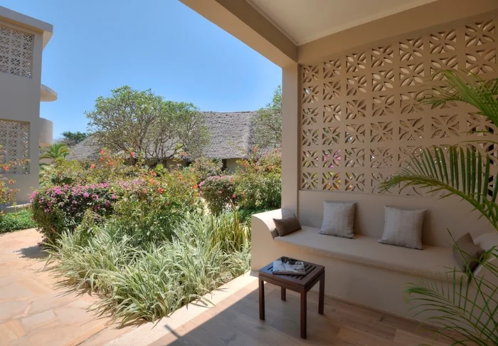 Hotellet er inspireret af Zanzibars afrikanske hjerte og øens arabiske historie. Værelserne er 45 m² og har en 12 m² stor balkon eller terrasse, hvorfra der er en fantastisk udsigt over haven og Det Indiske Ocean. Værelserne er indrettet i en moderne stil med et strejf af Afrika og varme jordfarver. Alle værelser er udstyret med himmelseng med myggenet, aircondition, loftsvifte, telefon, TV, Wi-Fi, minibar, sikkerhedsboks, CD/DVD afspiller samt te- og kaffe faciliteter.
