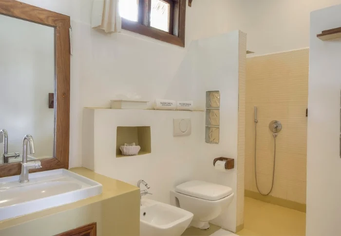 Og der er netop tale om deciderede villaer; her er opholdsrum, soveværelse, badeværelse og en stor terrasse med egen pool. Indrettet i en smagfuld sammensætning af afdæmpede farver med mørke mahogni møbler i klassisk Zanzibar-stil. Med luft og god plads omkring dig, kan du næsten mærke din puls falde helt til ro i samme øjeblik, du træder ind i villaen. Her er alt, hvad du skal bruge: TV, aircondition, Wi-Fi, sikkerhedsboks, udendørs- og indendørs bruser, badekar, te- og kaffefaciliteter osv. Når du slår dørene op til din private terrasse, har du både solsenge og egen pool. Udenfor døren venter et par cykler, hvis du skulle få lyst til at tage på opdagelse i lokalområdet.