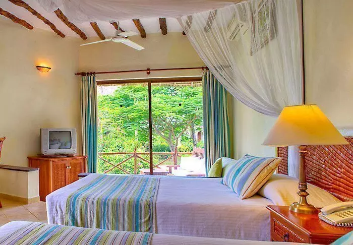 56 af standardværelserne ligger i runde hytter bygget i ægte afrikansk stil med stråtag. Der er to værelser i hver hytte, men værelserne har egen indgang fra hver sin side af hytten, så det føles som om, man har sin egen hytte. Alle værelserne har egen terrasse, og en god indretning med masser af plads. Du er kun et par minutters gang fra poolen og stranden.