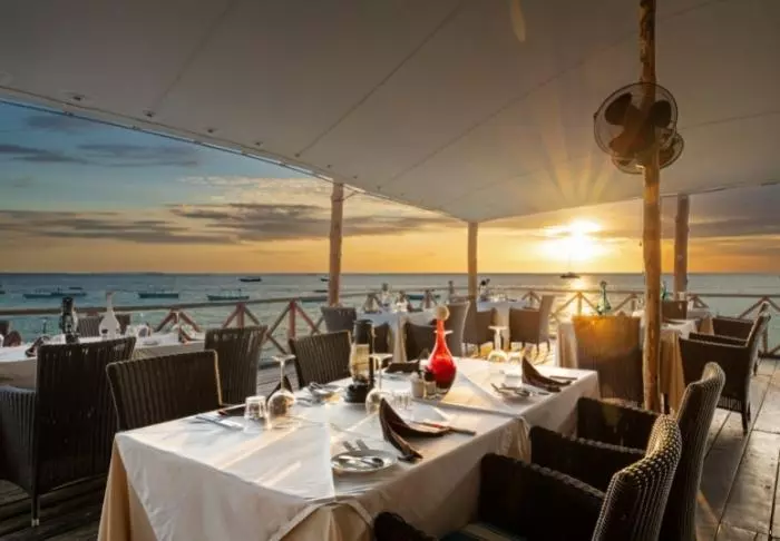 Hotellets to restauranter ligger med flot udsigt til stranden og det turkisblå hav. Her kan du nyde god mad og drikke sammen med en fantastisk udsigt over Det Indiske Ocean. Den ene restaurant serverer lette asiatisk-inspirerede retter såvel som klassisk cafe-mad, mens hovedrestauranten tilbyder en spændende menu med nyfortolkninger af det afrikanske og europæiske køkken, samt alt godt fra havet. På øverste etage serveres cocktails – det er det perfekte sted at nyde solnedgangen. Det er også her på toppen af hotellet, at du finder yoga-centeret.