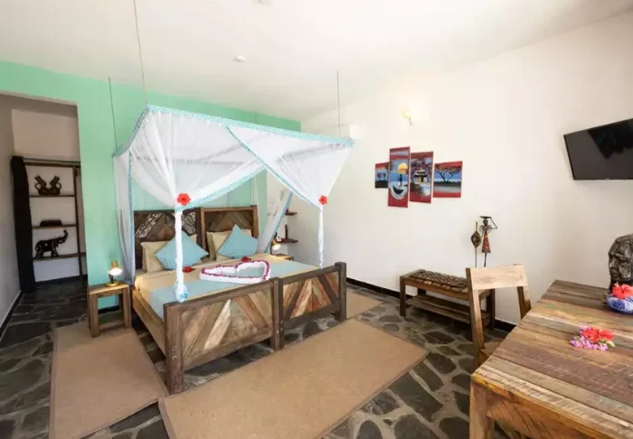 På Zanzibar Bay finder du 104 værelser med myggenet over sengene, aircondition, fladskærms-TV, te- og kaffefaciliteter, terrasse og gratis Wi-Fi.